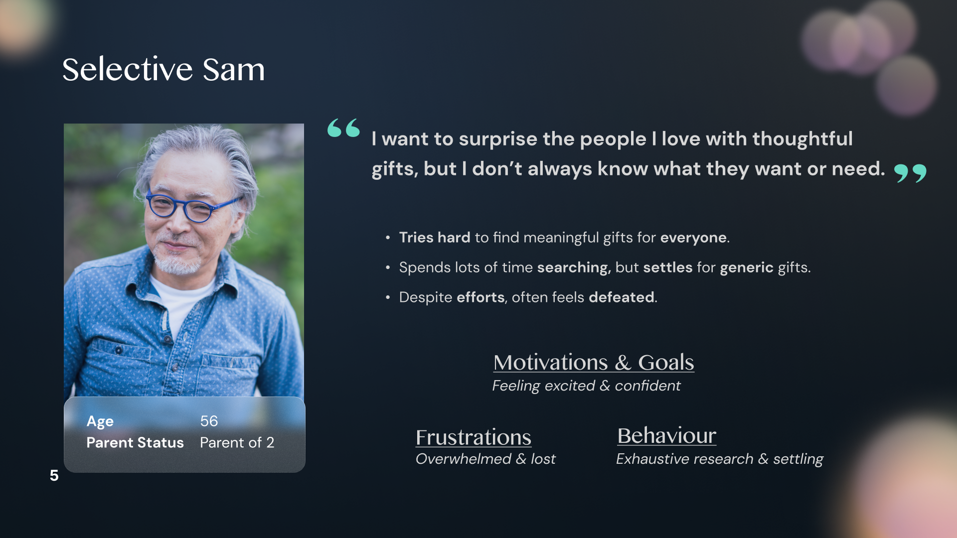 Sourcing 15+ articles based on gifting in North America, I found that a common insight was that 58% of parents aged 55+ wanted to buy meaningful gifts but found themselves feeling overwhelmed and buying gift cards as a solution.