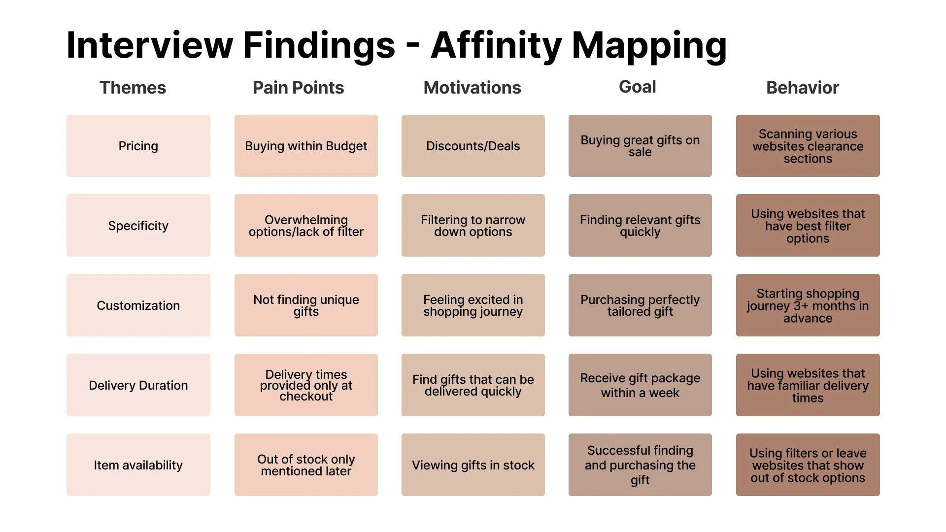 Hosting three user interview sessions, I discovered from my participants, that individuals 55+ preferred using filters to save time and help with choice overload when searching for meaningful gifts.